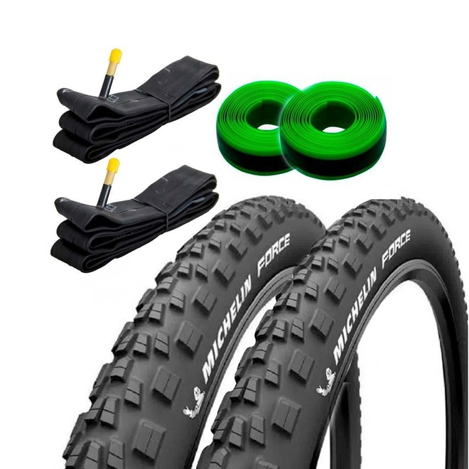 Kit de 1 Par de Pneus Michelin Force Aro 29 29x2.25 + 2 Câmaras Bico Grosso + 2 Fitas Anti Furo