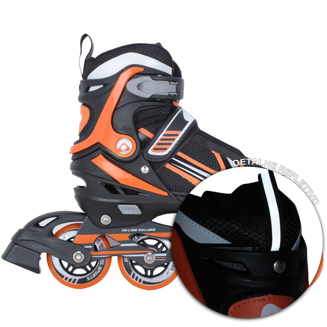 PresilhaTrava de Segurança Sim Material da Base Plástico Material da Roda PU (Poliuretano) Quantidade de Rodas Quatro Tamanho da Roda Verificar Tabela de Numeração em Dimensões e Peso Rolamento ABEC 9 Tipo de Bota In-Line Bota Interna Removível Sim Passante Puxador em Tecido Freios Traseiro Quantidade de Freios 1 Idade Recomendada Acima de 06 anos Superfície Indicada para Uso Plana