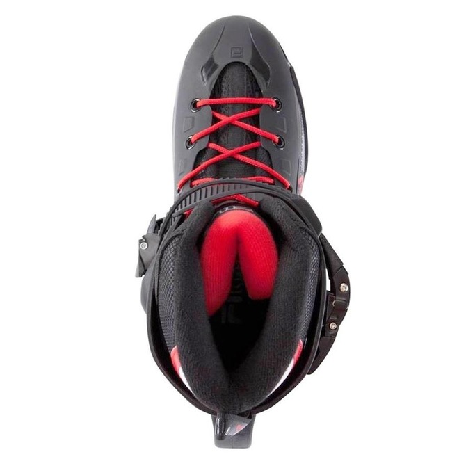 O setup garante excelente suporte e transferência de energia ao patinar, pois é equipado com bota rígida, cadarço e duas fivelas.