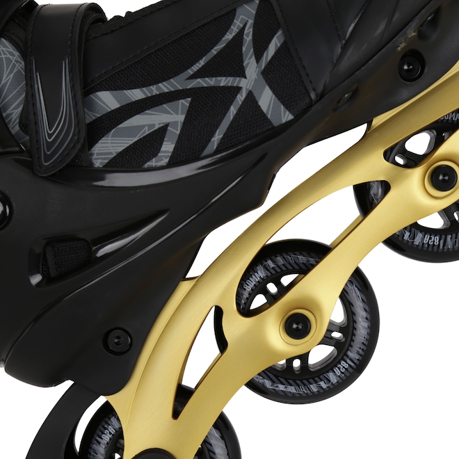 PresilhaTrava de Segurança Sim Material da Base Alumínio Material da Roda PU (Poliuretano) Quantidade de Rodas Quatro Tamanho da Roda 80 mm Rolamento ABEC 7 Dureza 82a Tipo de Bota In-Line Passante Em Tecido