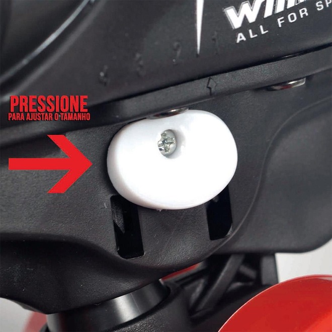 Os patins têm botão de ajuste para proporcionar total segurança, e ter o encaixe adequado dos pés.