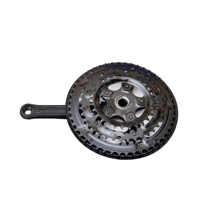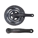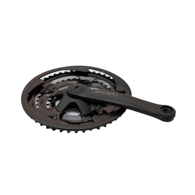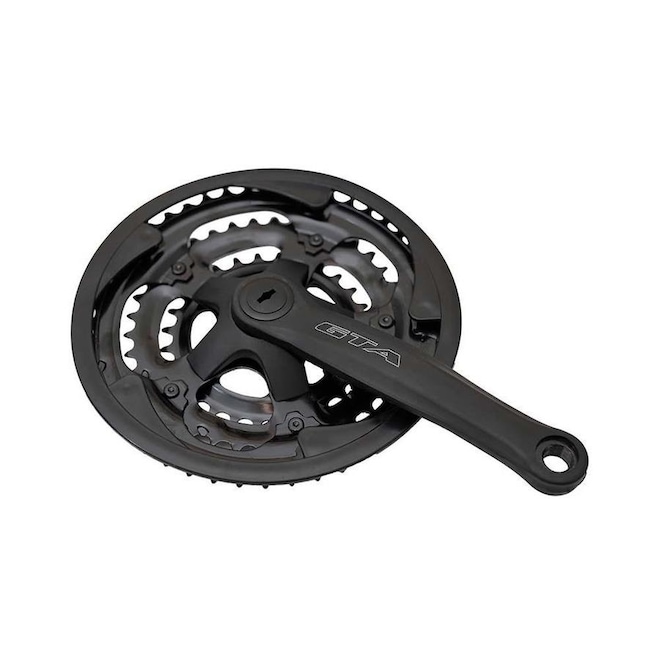 O pedivela de bicicleta triplo GTA é compativel com bicicletas aro 29, 26 e 24 com caixa de centro de 34.7mm, para uso com eixo central com ponta quadrada e para pedal (ingles) com rosca de 9/16 po