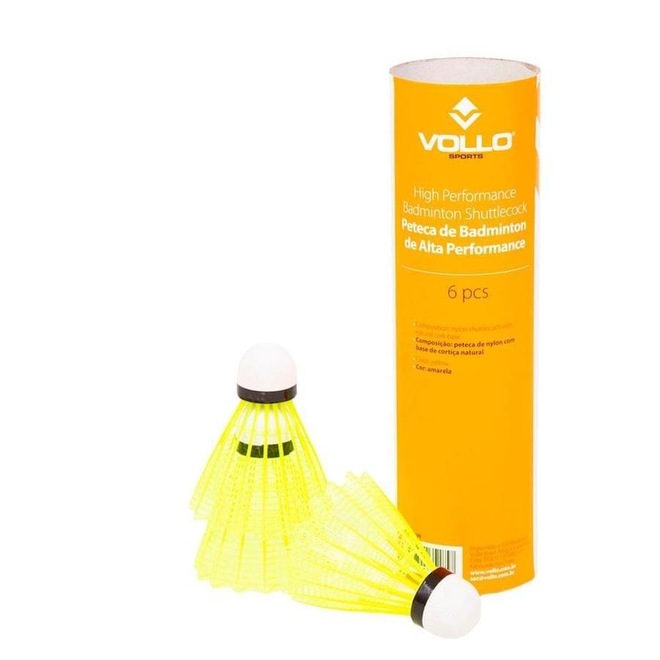Peteca de Badminton Vollo de nylon com base de cortiça tubo com 6 petecas.