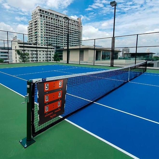 Pode ser usado em outros esportes, como Beach Tennis, Padel etc. ESPECIFICAÇÕES: ? Placar de dupla face atualiza a pontuação por meio de discos laterais deslizantes. ? Dígitos de 0 a 9 para três sets. ? Equipamento leve (Aprox.