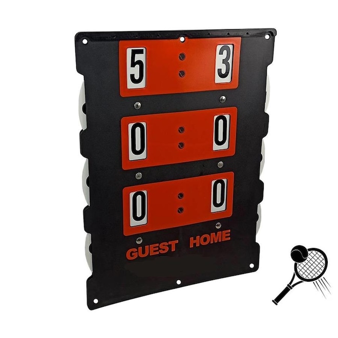 Placar de resultados para tênis Pista e Campo.Placar feito de plástico com mostrador giratório na lateral para alterar as pontuações.