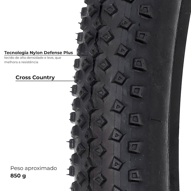 - Estrutura: Pneu com arame (não compatível com tubeless)