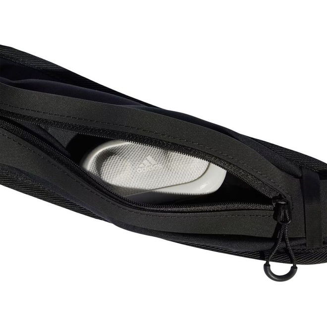 Nome: Pochete Adidas Suporte Corrida Gênero: Unissex Características: Compartimento para garrafa de água Composição: 79% poliéster reciclado, 21% elastano interlock Volume: 0,75 L Conteúdo da embalagem: 1 pochete Dimensões aproximadas: 6,5 cm x 45 cm x 15,5 cm Detalhes: Cinto ajustável com fecho de fivela Código do artigo: IT2060 Marca: Adidas