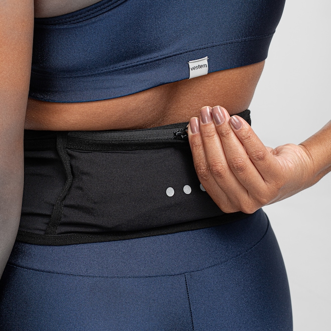 Com 5 compartimentos inteligentes, incluindo bolso principal amplo, bolsos laterais, bolso com zíper, detalhes elásticos e gancho interno, ela mantém celular, chaves, cartões e géis sempre seguros durante a corrida, caminhada ou treino funcional.