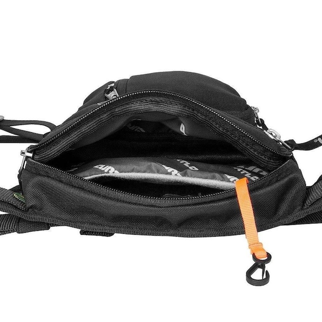 Pochete Curtlo Cartucheira Preto Pochete tipo cartucheira, resistente à água, com dois compartimentos individuais e dois pontos de fixação: na cintura e na coxa. Possui bolso acolchoado para celular, porta-chaves, bolso superior frontal de fácil acesso e inferior com abertura vertical. Ideal para motociclistas, militares e uso diário. DIMENSÃO: 38x33x4,5 cm PESO: 210g TAMANHOS: U TECIDO: Durvenref: M0ZSL7
