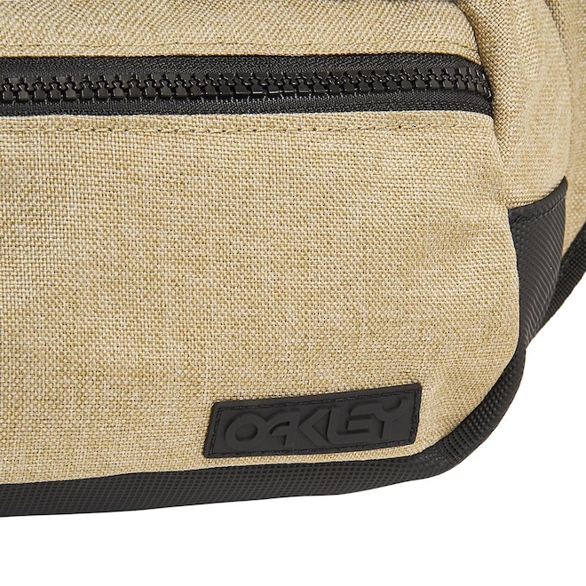 Pochete Oakley com alça ajustável com fecho de fivela, painel traseiro de malha com bolso com zíper, 2 bolsos frontais com zíper, forro interno com logo e patch de borracha com logo Oakley B1B na parte da frente.