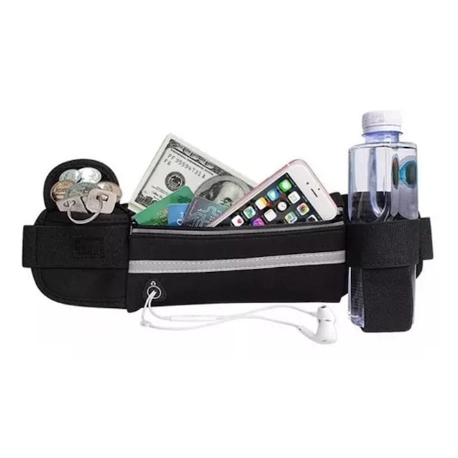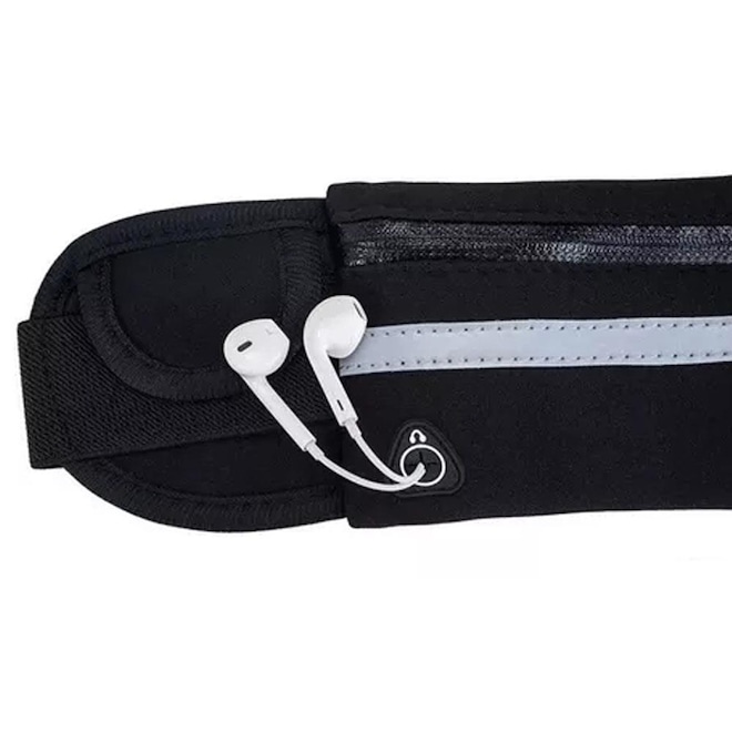 - Sobre o produto - Pochete Sml Fitness Corrida Porta Celular- Pochete Fitness Preta Corrida Porta Celular - Ideal para levar celular, documentos, chaves, dinheiro e garrafa. Proporciona maior conforto e segurança nas caminhadas e corridas. Não incomoda nem fica balançando pois possui uma alça elástica ajustável deixando a pochete bem rente ao corpo. - Avisos importantes: - - Imagens mermente ilustrativas. - Informações adicionais: - - 2 bolsos laterais independentes. - - Faixa refletiva na frente. - - Saída para fone de ouvido. - - Pode ser usada por dentro da roupa. - - Alça elástica ajustável. - Dimenções apriximadas: - - Largura: De 39 a 122cm. - - Comprimento: 10cm. - - Peso: 73g. - Material: - - Neoprene. - - Elastano. - Marca: - - TJK - Itens inclusos: - - 1 Pochete - ref: M0Y9SR