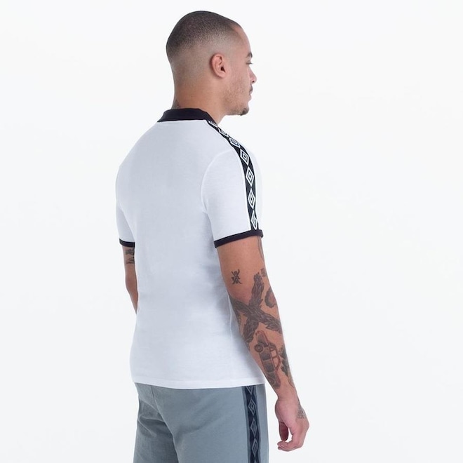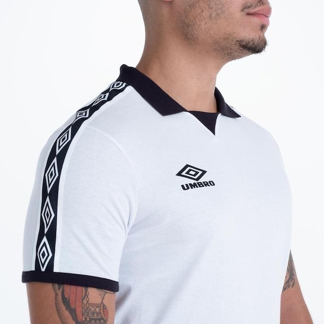 Polo masculina confeccionada em algodão. Modelagem regular com gola polo estilizada em retilínea e manga curta. Possui tape Umbro personalizado nas mangas, detalhe ?V? do peitilho em ribana na gola, punhos contrastantes e logo Umbro em silk na parte frontal direita superior.ref: M11V5T