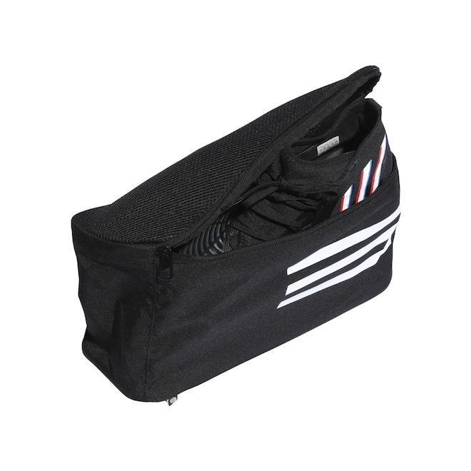 Durabilidade e ventilação: Construída para resistir ao uso diário, esta sacola possui um painel lateral em tela elástica respirável que promove a circulação do ar, evitando odores e mantendo seus calçados frescos.