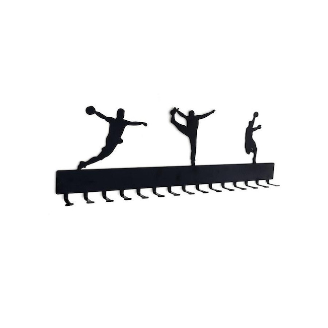 3- É resistente, tem 15 ganchos e suporta aproximadamente 50 medalhas para você valorizar suas conquistas.