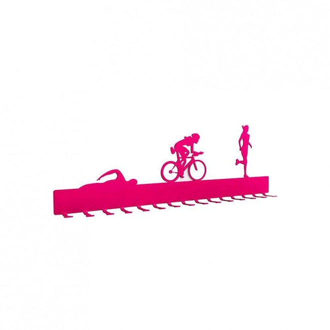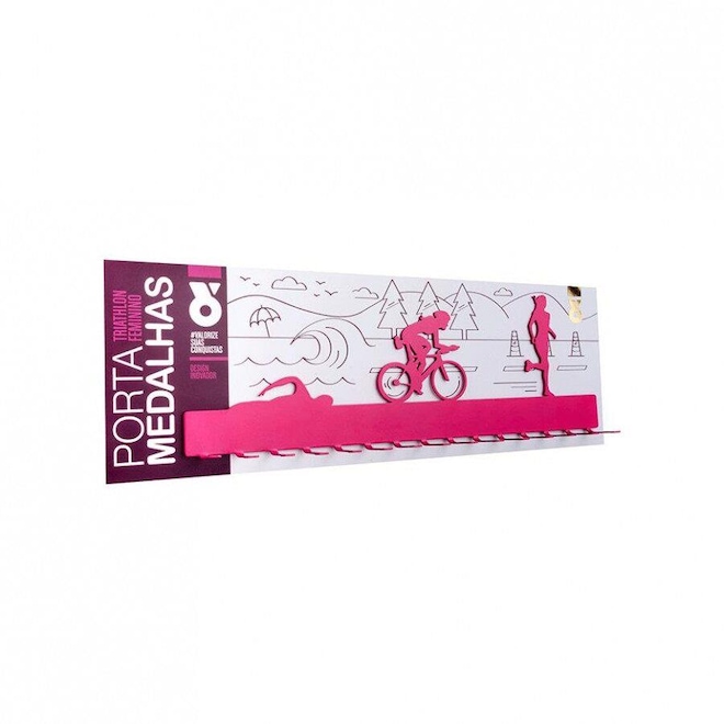 Porta Medalhas de Triathlon Feminino Rosa é o presente ideal para valorizar o desempenho das super-atletas que adoram o rosa pink, o presente perfeito para mães, namoradas, irmãs, e amigas apaixonadas por atividades de alto desempenho.