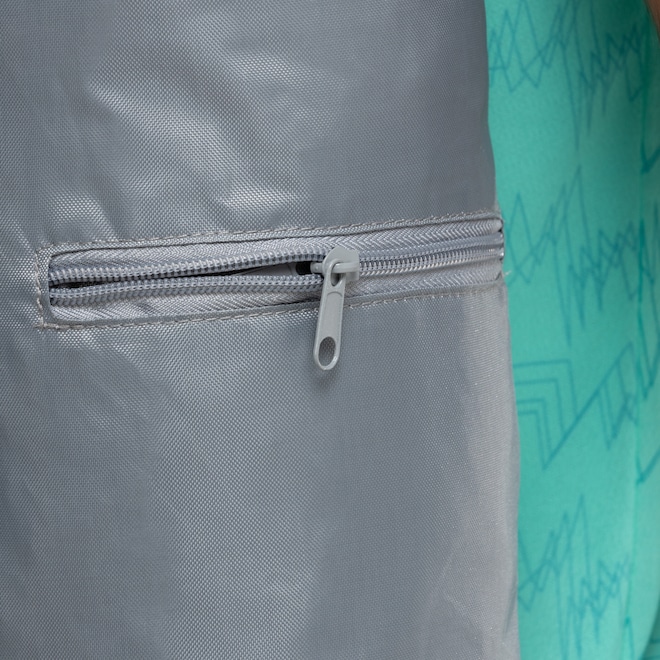 Conta com alça e é packable.