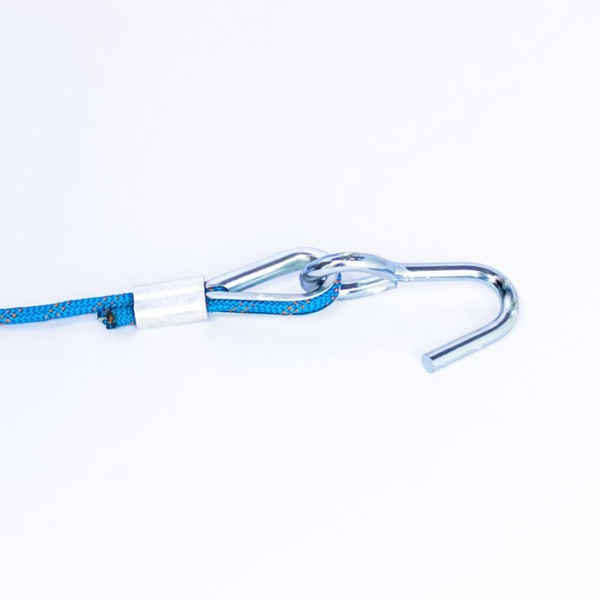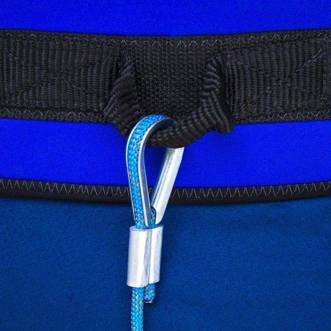 É robusto e confortável, confeccionado em neoprene 5mm com revestimento de plush na parte interna, envolto em fita de nylon de 40mm que proporciona resistência ao produto; corda de montanhismo 5mm; "sapatilhas" para cabo de aço e tudo preso firmemente com grampos nicopress.