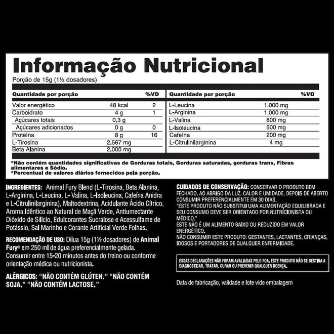Pré Treino Animal Fury Pre-Workout 450G da Universal Nutrition - Maçã verde, um suplemento poderoso e eficaz projetado para impulsionar seus treinos e elevar sua performance atlética a novos patamares. Este pré-treino foi cuidadosamente formulado para fornecer energia explosiva e resistência duradoura, tudo o que você precisa para alcançar seus objetivos.