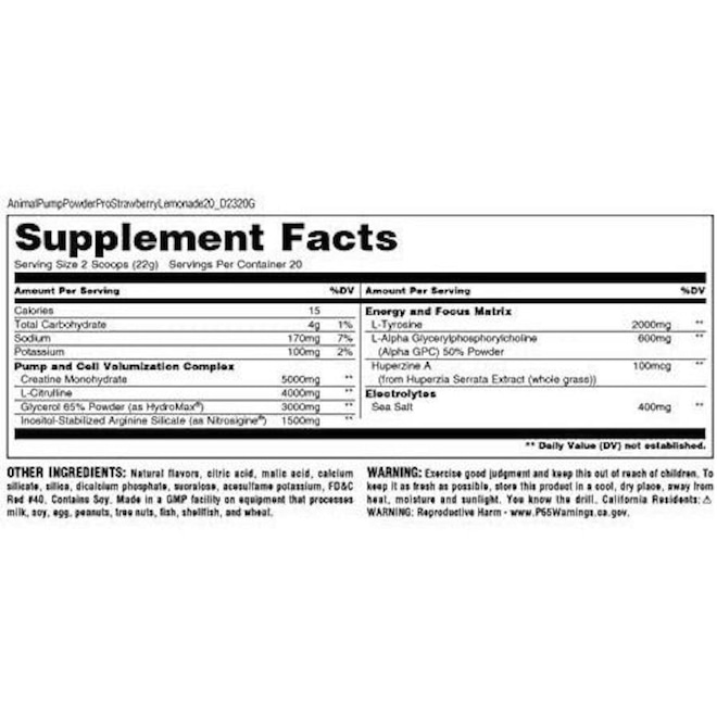 A formulação do Animal Pump Pro foi projetada pelo IFBB Pro John Jewett para utilizar a sinergia entre os ingredientes dosados ??de forma eficaz para maximizar a bomba, o desempenho e o foco na academia.