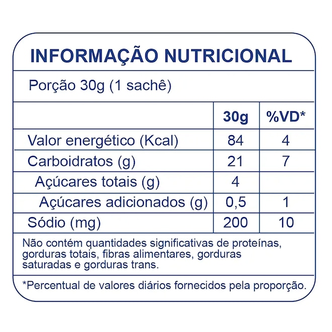 Ingredientes Maltodextrina, água, glicose de milho, D-frutose, maracujá em pó, estabilizante citrato trissódico, ácido cítrico, aroma idêntico ao natural de maracujá, edulcorante estevia, conservadores benzoato de sódio e sorbato de potássio.