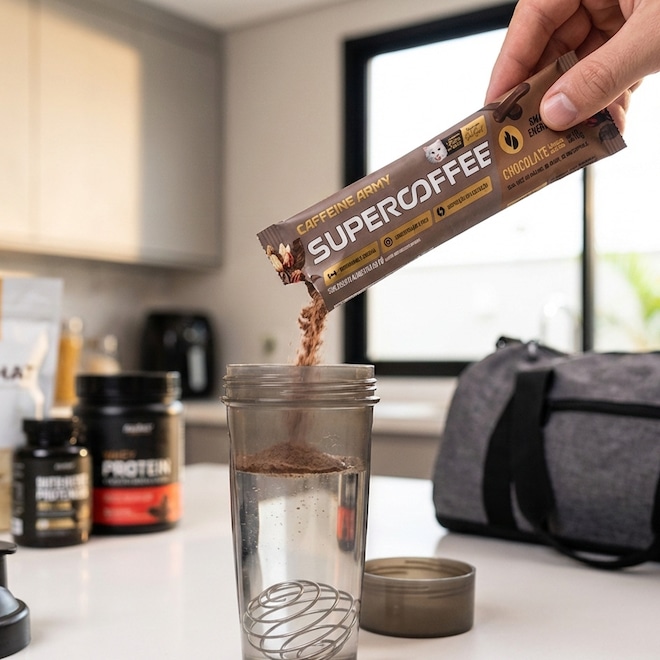Com sua embalagem prática em stick, leve o poder do SuperCoffee para qualquer lugar: academia, trabalho ou em suas aventuras.