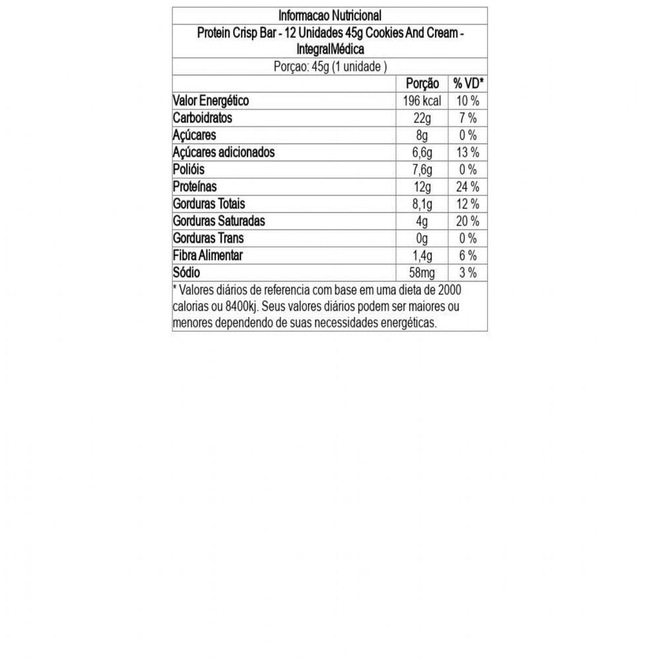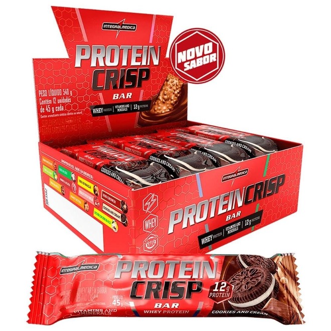 Deu vontade de comer doce sem sair da dieta? Protein Crisp Integralmédica é a barra de proteína com 13 g de proteína e baixa caloria. Ótima fonte de vitaminas, minerais e fibras, ajuda a saciar a fome e evitar o catabolismo. A Protein Crisp é uma barra de proteína completa, unindo ótima qualidade na composição de seus ingredientes com praticidade de consumo.. Tem ótima digestão é excelente para quem busca uma opção saudável de alimento proteico para incluir em dietas de variados objetivos como: aumento de massa magra, perda de gordura e reposição de proteínas, por exemplo. Pode facilmente ser utilizada como substituto de alimentos doces, tendo textura macia e crocante. Protein Crisp é formulada com Whey Protein pode ser consumida no pré e pós treino, entre as refeições (lanches intermediários) e substituta de sobremesas.
