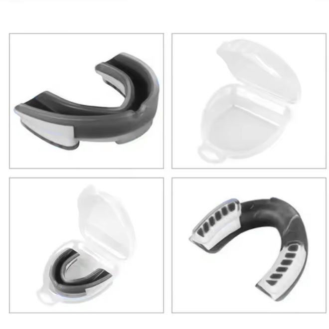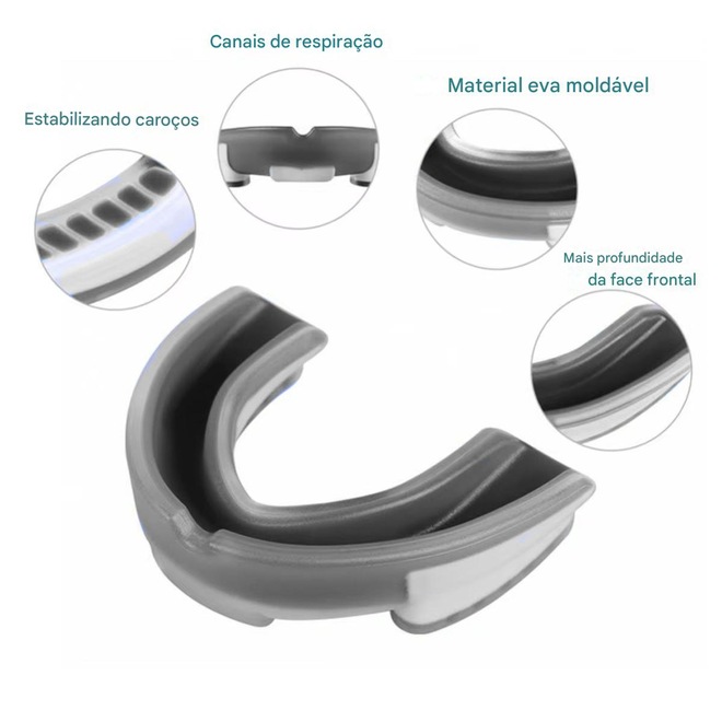 6- Contém 1 protetor bucal e uma embalagem para armazena-lo