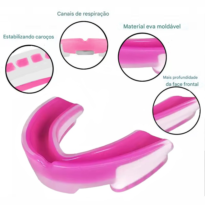 6- Contém 1 protetor bucal e uma embalagem para armazena-lo