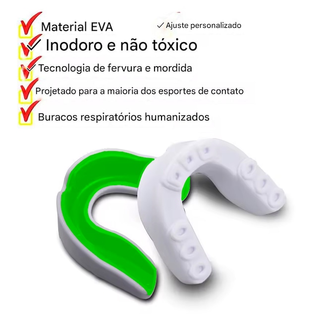 5.Disponível para adultos e junior: Nosso protetor bucal slim fit vem em tamanhos adequados para adultos e junior, garantindo um ajuste seguro e confortável para todas as idades.