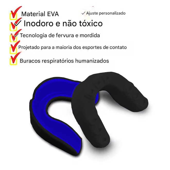 5.Disponível para adultos e junior: Nosso protetor bucal slim fit vem em tamanhos adequados para adultos e junior, garantindo um ajuste seguro e confortável para todas as idades.