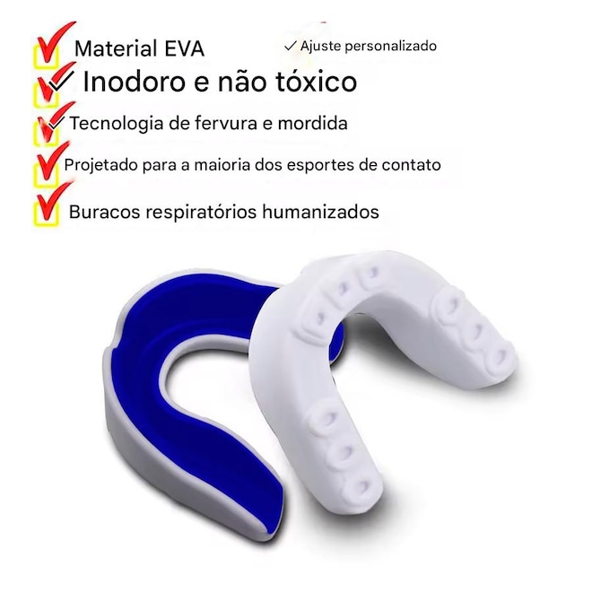 5.Disponível para adultos e junior: Nosso protetor bucal slim fit vem em tamanhos adequados para adultos e junior, garantindo um ajuste seguro e confortável para todas as idades.