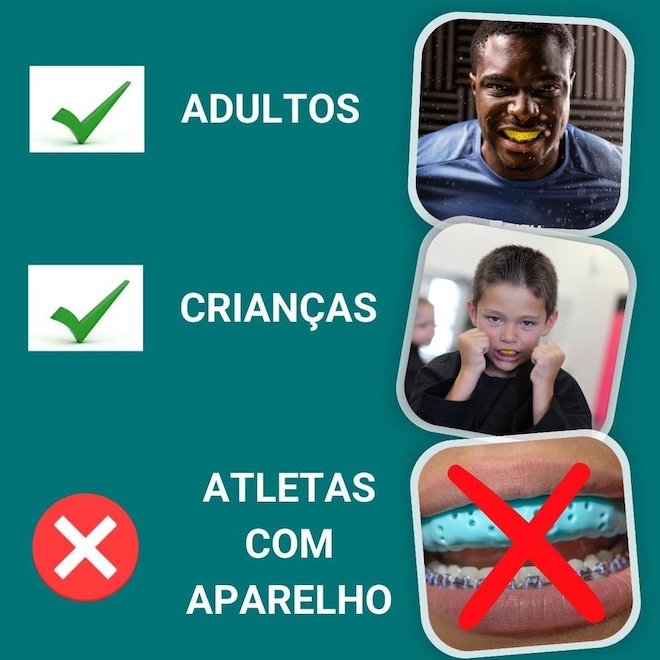 Recomendado para esportes onde protetor bucal é recomendado mas não obrigatório