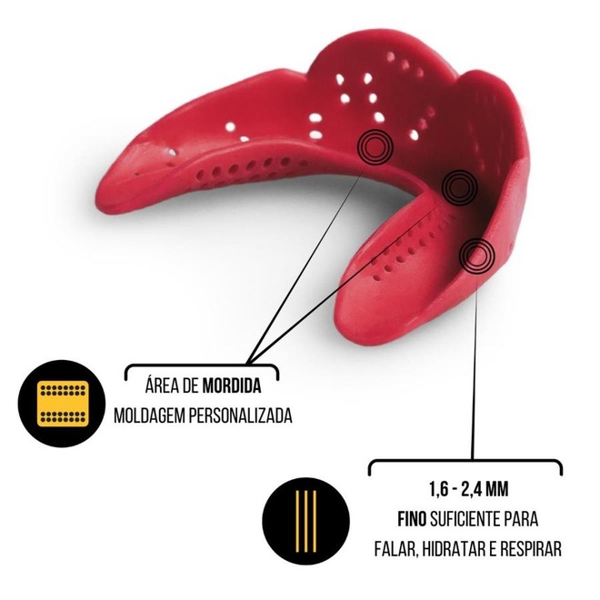 Combinado com a facilidade de moldagem, o MAX proporciona uma excelente combinação de proteção máxima e conforto para falar, beber e respirar ainda melhor, elevando e muito sua performance esportiva!