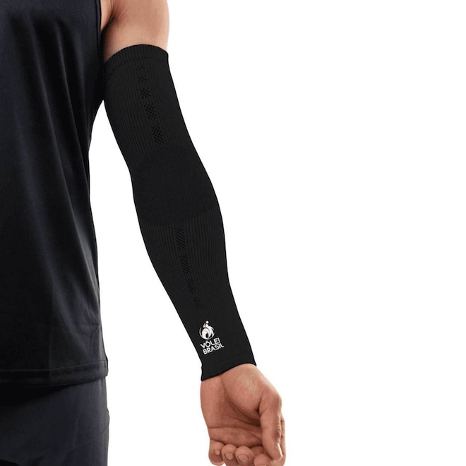 Características: Desenho funcional 3D, ultra resistente, alta tecnologia, garantindo conforto e segurança das articulações, Eficiência na transpiração, afastando o suor da pele, diferente de Neoprene, elásticos ou outros tecidos, Máxima amplitude de alongamento através da malha tridimensional, moldando-se anatomicamente ao braço