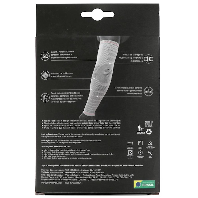 - Detalhamento: Possui 2 unidade (par), não é indicado para região com lesões ou que tenham passado por cirurgia, indicado para o uso nas atividades físicas para garantir conforto e liberdade nos movimentos, confeccionada em material leve, ajustável proporcionando compressão e conforto;