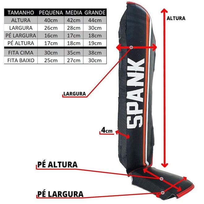 1 PAR DE CANELEIRA PROFISSIONAL SPARRING SPANK FICHA TECNICA - Possui 3 Tamanhos P , M , G - Duas Fitas ajustáveis, na parte traseira da perna garantindo encaixe perfeito na panturrilha e calcanhar. - Elástico adicional (não-removível) na sola do pé, sem causar fricção desnecessária ao pisar. COMPOSIÇÃO - Revestida em sintético de Alta Qualidade. - Enchimento com dupla camada de PU e PVC - Possui 2 fitas para ajuste. - Fechamento Auto Colante de Alta qualidade. - Alça com elástico para melhor fixação no pé. BENEFÍCIOS: - Super confortável. - Extrema durabilidade e máxima resistência a impactos - Alta Qualidade nas velcros e elásticos, proporcionando máxima fixação ao atleta. - Ajuste regulável dando maior conforto durante os treinos. - Garantia: Contra defeito de fabricação. INDICAÇÃO DE USO: A Spank Company desenvolveu este produto para suprir a necessidades dos atletas de alta performance, um produto muito confortável e com extrema durabilidade e máxima resistência a impactos, conseguimos chegar a um ajuste perfeito e inovador e com espessas camadas de proteção modeladas à mão para garantir mais segurança.ref: M0RGYV