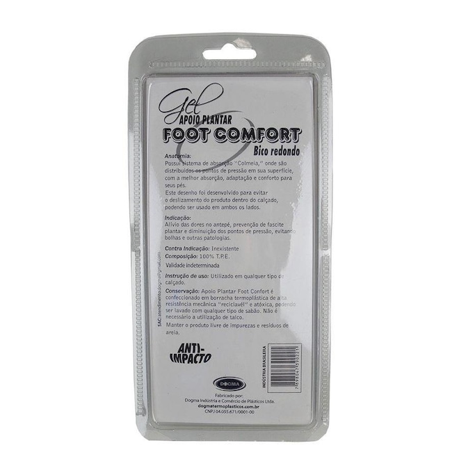 Protetor Pé Apoio Plantar - Gel - Bico Redondo -Dogma - Foto 1