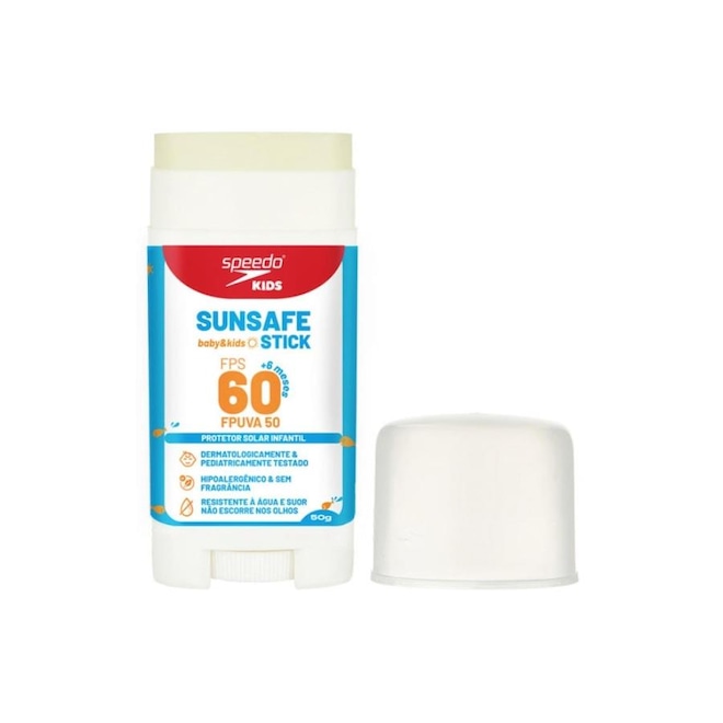 Sun Safe Kids é um protetor solar em bastão para uso infantil. Ideal para uso no esporte, piscina, praia ou brincadeiras ao ar livre. Com alta proteção FPS 60 e FPUVA 50 e resistência à água e ao suor, protege a pele sensível das crianças por até 4 horas. Seu formato em bastão garante maior praticidade, deslizando facilmente sobre a pele, garantindo uma aplicação mais confortável para as crianças