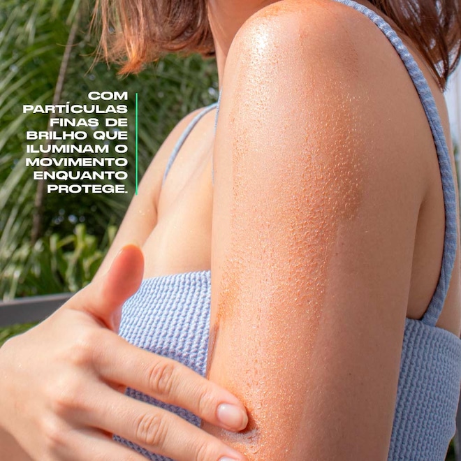 Com textura Dry Oil (toque seco), alia iluminação e tratamento. É ideal para uso durante a prática esportiva, seja ela indoor ou outdoor, para o dia a dia ou até para aquela ocasião especial. Com toque seco e aplicação corporal, traz partículas finas de brilho em tonalidade bronze, que iluminam o corpo sem deixar um aspecto oleoso.