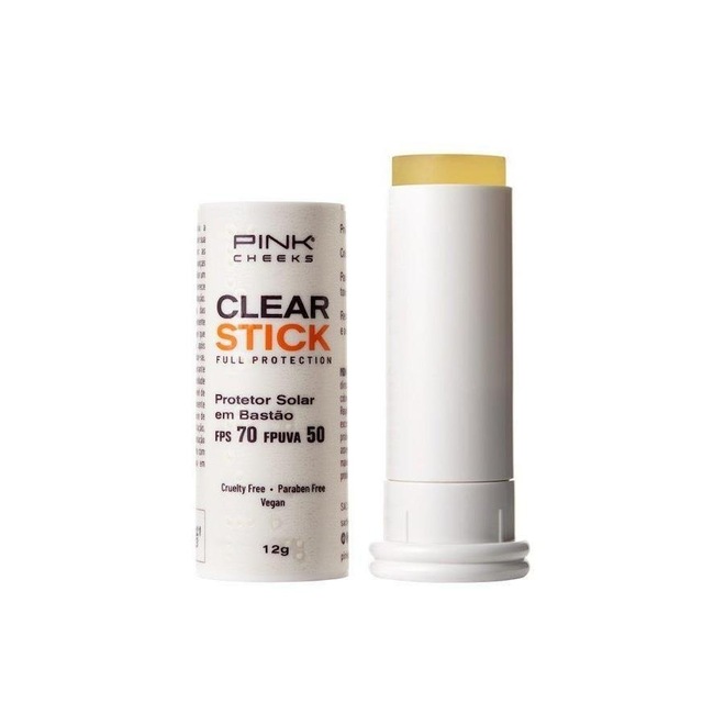 Protetor Solar Transparente FPS70 FPUVA50 Clear Stick Pink Cheeks 12g