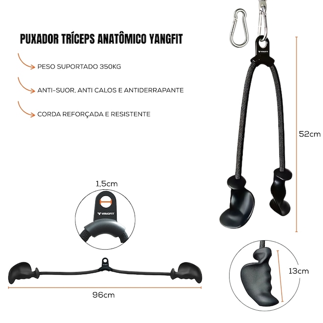 Puxador Tríceps Corda Profissional Yangfit Pegada Anatômica - Foto 1