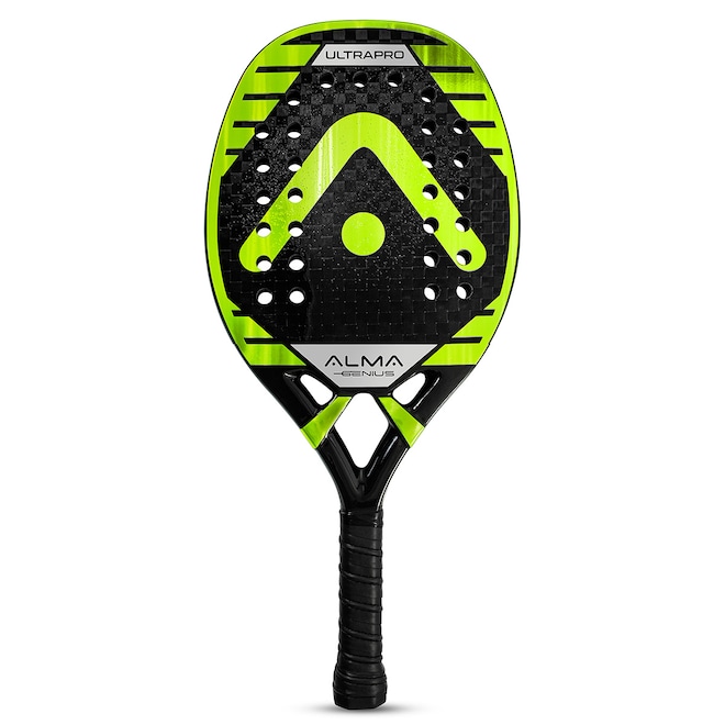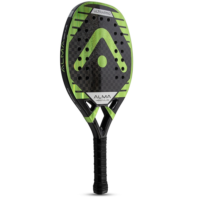 A Raquete Beach Tennis Carbono 12K Ultra Pro Preta Verde Alma Genius é feita com tecnologia Carbon Tech em sua superfície, com 12K de Carbono. Ela é uma das raquetes mais leves do mercado, com o peso entre 310 e 330 gramas, garantindo maior conforto durante as partidas. A furação da Raquete é em formato de A, proporcionando uma resistência ao ar. Ela possui um acabamento em EVA Soft Plus, fibra de carbono e tratamento com Quartzo Fino aumenta a aderência e o atrito da bola na superfície da raquete. Além disso, acompanha 1 bolsa para raquete.