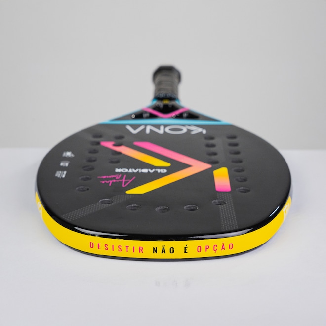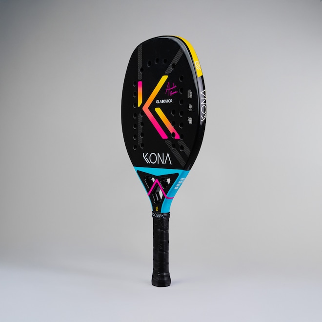 A Raquete Beach Tennis Kona Gladiator 2025 é a mais nova edição desenvolvida em parceria com o atleta André Baran, atual #3 do mundo. Esta raquete traz atualizações inovadoras para elevar a sua performance na quadra, proporcionando o máximo em agilidade, controle e potência.