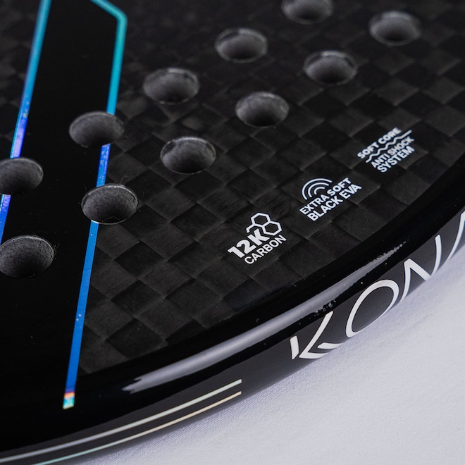A K-DOZE WHITE 2025 é desenvolvida com o exclusivo carbono 12K premium, com fio de carbono japonês, projetada para atender jogadores que buscam equilíbrio entre ataque, defesa e agilidade. Com espessura de 22 mm e 26 furos estrategicamente distribuídos, esta raquete proporciona um toque mais suave, aliado a conforto e elasticidade, graças à espuma interna de EVA BLACK EXTRA SOFT.