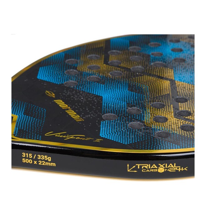Carbono Triaxial 24K: A tecnologia exclusiva da Mormaii proporciona uma superfície resistente e flexível, oferecendo maior potência e controle durante o jogo. Sua fibra mais longa na face garante um toque suave e confortável, reduzindo o risco de lesões.