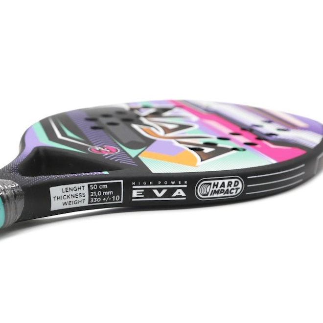 A Raquete de Beach Tennis Naja Pró 3.0, confeccionada 100% em fibra de carbono, possui jateamento rugoso especial nas duas faces, material resistente, leve de manusear, promovendo uma melhor performance em todos os níveis de jogo, do iniciante até os mais avançados. Sua superfície plana com impacto equilibrado, possui 24 furos, facilitando a passagem de ar, tornando os movimento rápidos e leves. Espessura de 21 mm, permite uma redução consistente das vibrações causadas pelo impacto contínuo da bola, amenizando traumas do pulso, cotovelo e ombro. Cabo com grip texturizado que promove segurança, conforto e alto desempenho nas movimentações. Características: - Indicação: Adulto - Material: Fibra de Carbono - Impacto equilibrado - Superfície: Áspera com 24 furos - Peso: 330g ( aproximadamente) - Empunhadura: L2 Tamanho: - Dimensões do produto: 24cm (largura) x 0,21cm (altura) - Profundidade: 59cm - Espessura: 21mm - Comprimento: 50cm -Peso : 330+ / -10 gramas Indicações de uso: - Praia e quadras de areia - Para uma pratica segura tenha sempre o acompanhamento de um profissional. CONTÉM: 1 RAQUETE NAJA PRO 3.0ref: M0X37P