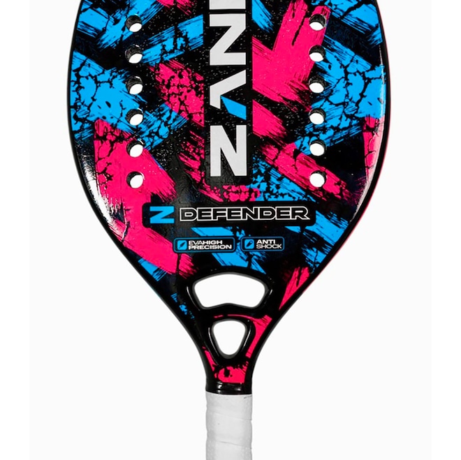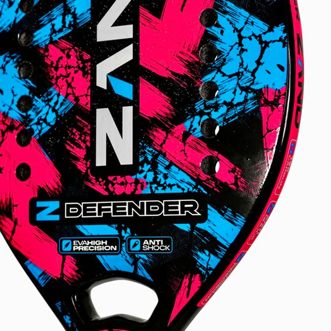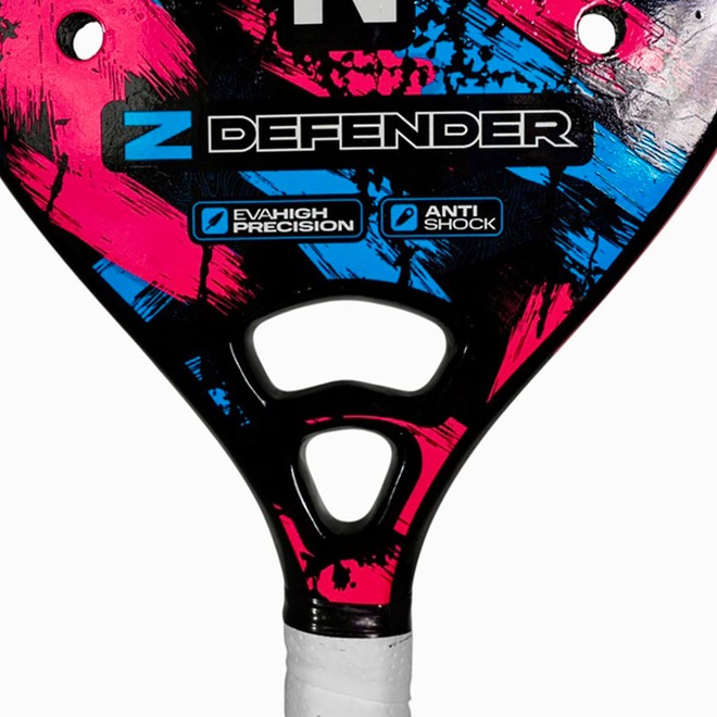 Com um design aerodinâmico e apenas 14 furos estrategicamente posicionados, a Z Defender otimiza a estabilidade e melhora a sensação de impacto, reduzindo vibrações e garantindo maior conforto durante o jogo. Além disso, conta com tecnologia Anti-Shock e um tratamento leve de fábrica para aumentar a durabilidade da estrutura.