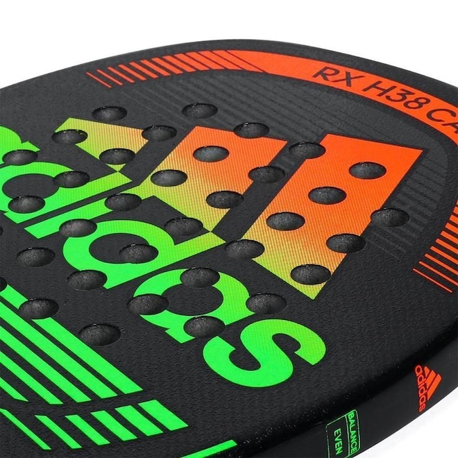 Conheça as Características da Raquete de Beach Tennis Adidas RX H38 Carbon - Perfil: Performance - Ano de Lançamento: 2023 - Material: Estrutura: Carbon.