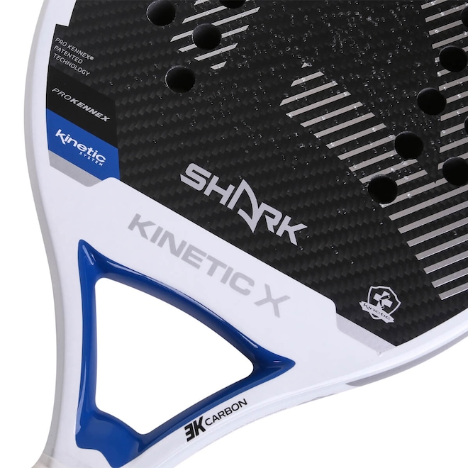 -O Sistema Shark Kinetic consiste em microesferas (Massa Cinética) contidas em cápsulas que são embutidas no aro da raquete. À medida que a raquete se move em preparação para a batida, o Sistema Kinetic armazena energia cinética na Massa Cinética. À medida que o aro da raquete acelera, as esferas de massa Kinetic se reúnem nas paredes da cápsula do lado oposto à bola.