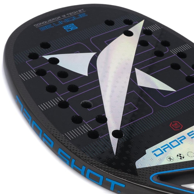 A Drop Shot é uma das marcas referência no mundo do Beach Tennis e Padel, conta com uma ampla linha de raquetes de todos os níveis e sempre com excelente qualidade. Um exemplo disso é a Raquete de Beach Tennis Drop Shot Conqueror 12 Tech, entre outras tecnologias, destaca-se o Spin Coating, que confere ao produto uma sensação extra em cada golpe, permitindo um alto nível de jogabilidade..